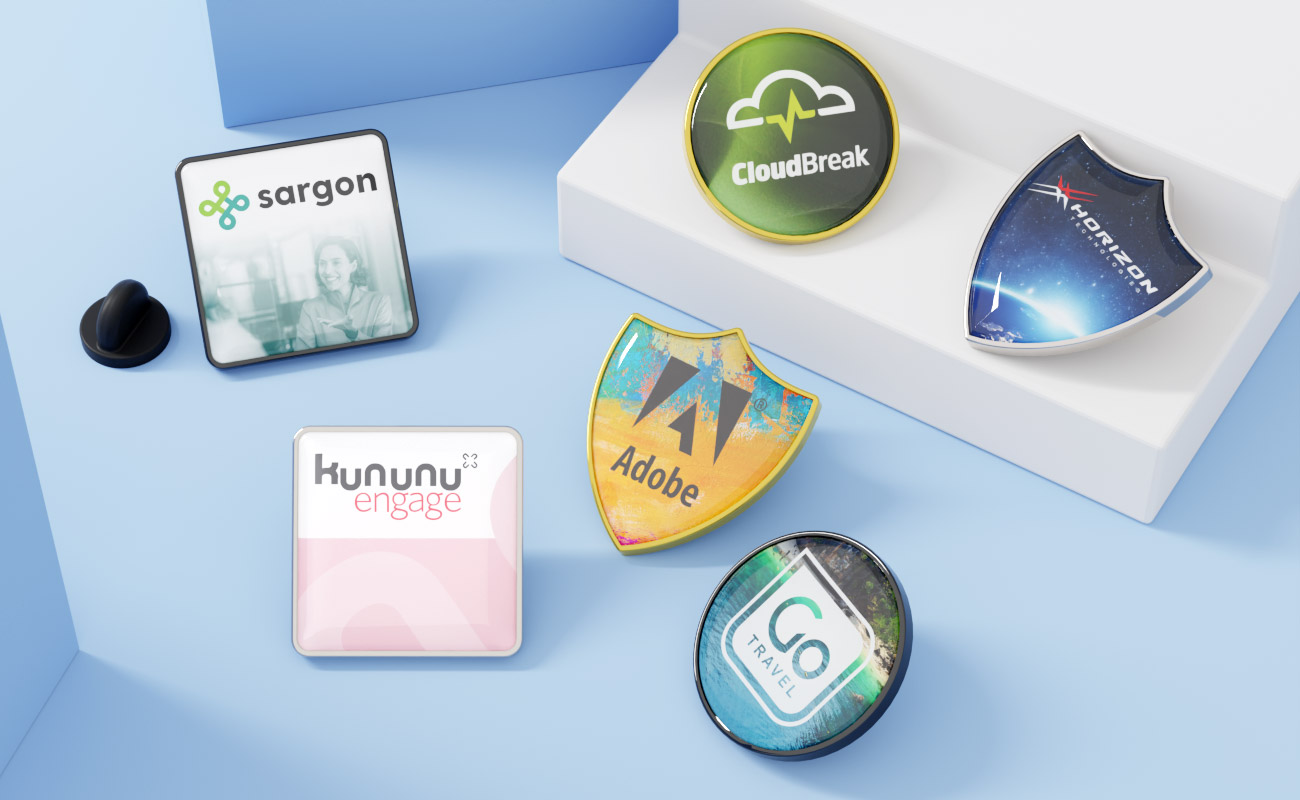 Skvělý doplněk k vaší objednávce. Obě strany mohou být opatřeny živou značkou. Odznak se snadno připevní na kartu - ideální pro rozdávání na veletrzích, akcích, konferencích nebo jako dárek pro zaměstnance a klienty.
