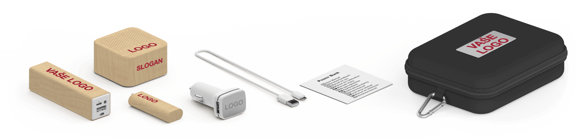 Zkombinujte 3 produkty v 1 šikovném dárkovém setu na cesty: Nature USB flash disk, Maple Powerbanka, Motion Wood USB kabel. Pečlivě vybrané výrobky uvnitř mohou být obrandovány vaším logem, adresou webových stránek, sloganem a dalším. Vršek dárkové krabičky může také být obrandován pomocí naší metody laserového rytí nebo sítotisku až ve čtyřech barvách. Povoleny jsou libovolné barevné kombinace výrobků.