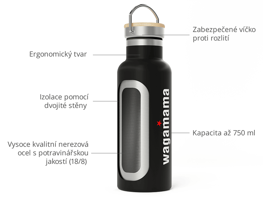 Můžete si vybrat z velikostí 500 ml/17oz a 750 ml/25oz, které neobsahují škodlivé chemikálie, a zdůraznit závazek své firmy' k ekologičtější budoucnosti tím, že poskytnete ekologickou alternativu k jednorázovým plastovým lahvím.