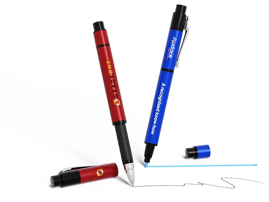 Accent je hladké kuličkové pero a praktický zvýrazňovač v jednom fantastickém modelu. Vaše logo můžeme přidat na obě strany těla propisky a také na víčko. Model Accent se také může pochlubit praktickým klipem a pohodlným úchopem – bude se tak používat každý den, čímž se vaše značka maximálně zviditelní.