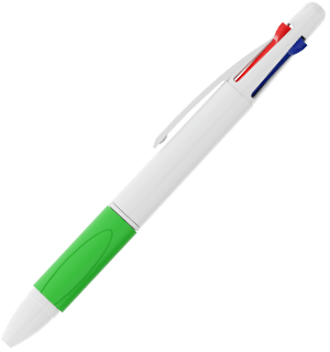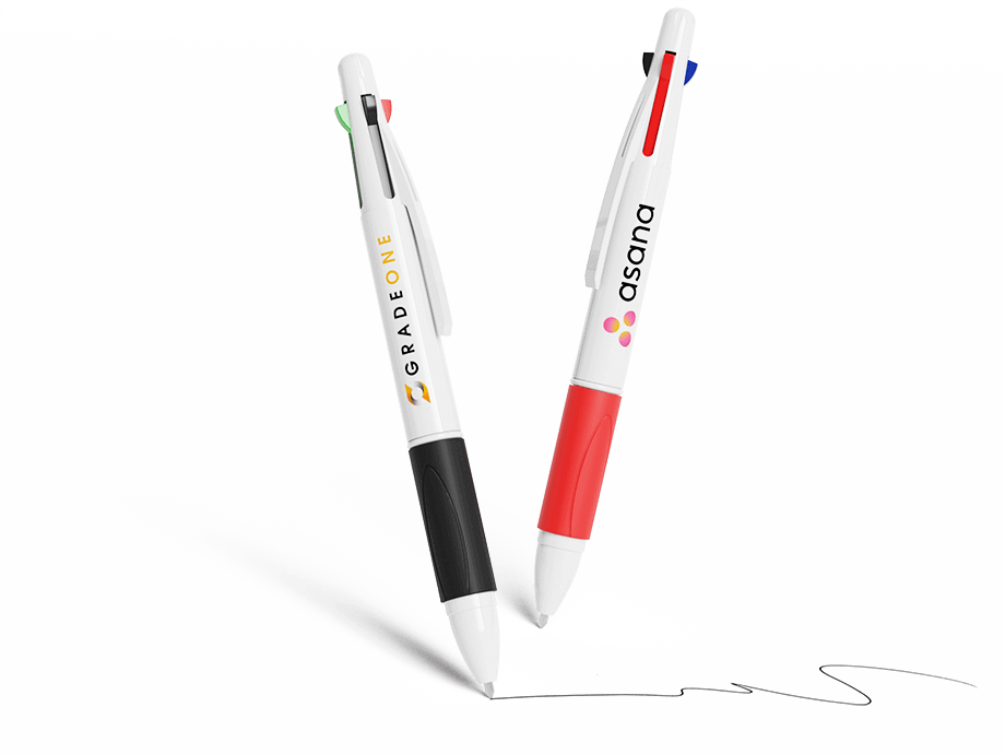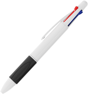 Quad je klasické čtyřbarevné pero, které v jediném modelu snoubí modrý, červený, zelený a černý kuličkový hrot. Každou z barev lze vysunout a zasunout pojezdovým přepínačem v horní části pera. Pohodlný úchop z termoplastické gumy dodáváme v celé škále barev, aby ladilo se stylem vaší značky. Na bílou povrchovou skořepinu lze fototiskem aplikovat vaše logo, slogan a jiné.
