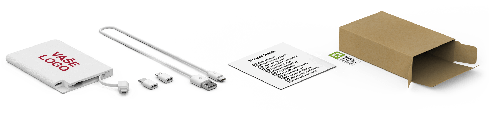 Magnetická krabička Power Card chrání a ukládá značkovou kartu Power Bank, když se nepoužívá. Víko je opatřeno bezpečnou magnetickou sponou a lze na něj umístit logo, slogan a webovou adresu. Vnitřek je vybaven pěnou na míru, která udrží Power Bank Card pevně na místě.