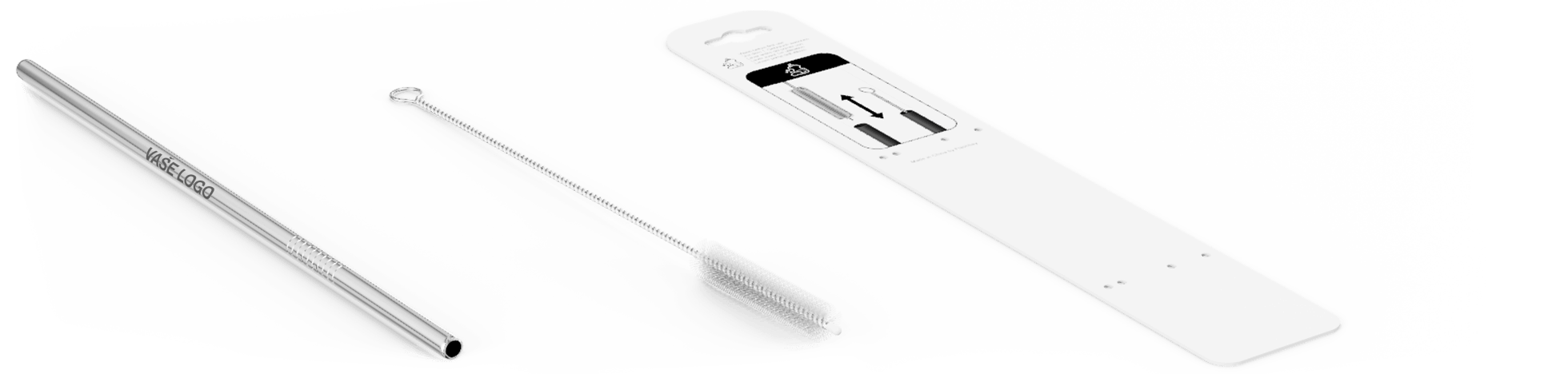 Znovu použitelné kovové brčko Straight má vyhrazenou brandingovou oblast, kde může být laserem vyryto vaše logo v super jemných detailech. Každé brčko je připevněno ke kartonové podložce, což zajistí snadnou distribuci na vaší příští konferenci nebo akci. Také je k němu dodáván praktický čistič.