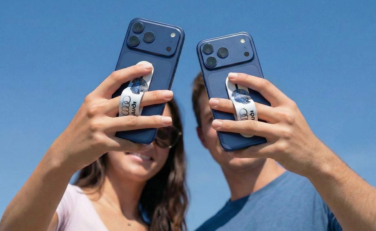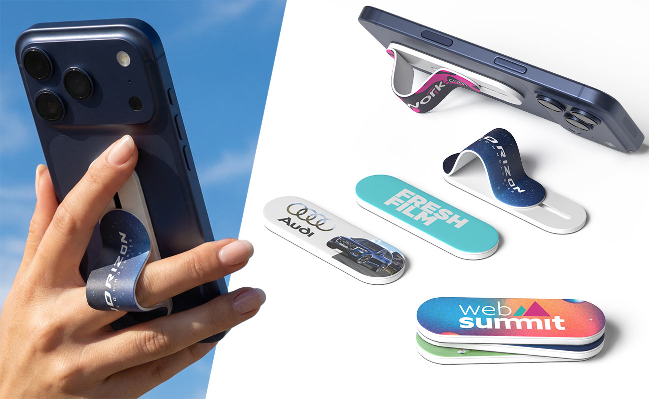 Digitální držák na telefon je zábavný a jednoduchý propagační produkt, který se bude opakovaně používat. Na vyhrazenou plochu pro značku lze vytisknout vaše logo, umělecké dílo a další prvky. Držák Digit jednoduše připevníte k telefonu tak, že odlepíte lepicí podkladový kryt a na 30 sekund jej přitisknete k telefonu. Poté můžete držák na prsty posouvat nahoru a dolů podle potřeby.