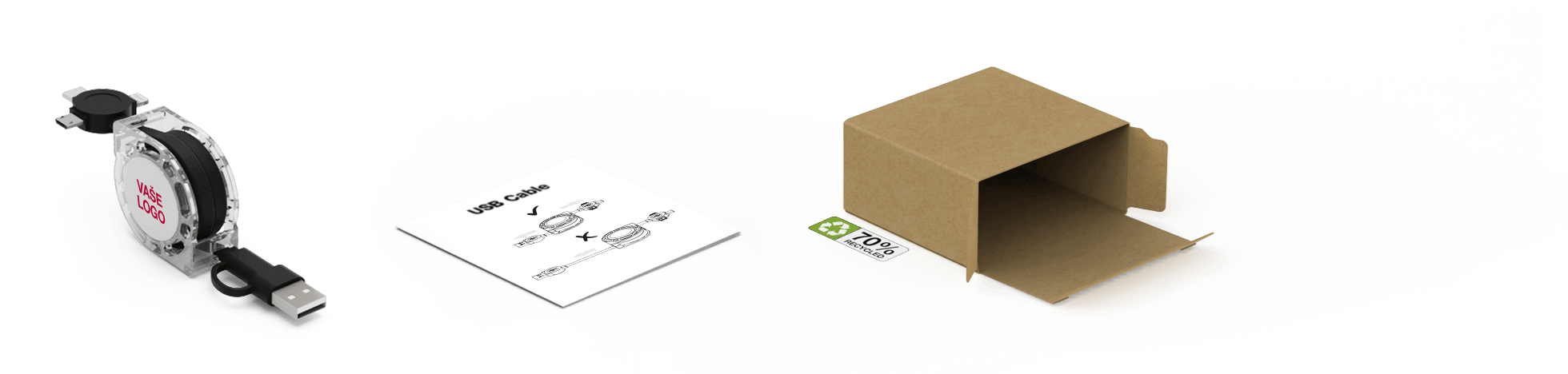 USB kabel Motion je na obou stranách vybaven rozšířenou plochou pro branding a je připravena na potištění vaším obrázkem, logem, sloganem, detaily události a dalšími prostřednictvím fototisku. Motion podporuje přenos dat a nabíjení a je kompatibilní se všemi hlavními zařízeními díky 4 různým konektorům, mezi které patří standardní USB konektor, Micro-USB, USB-C a adaptér Lightning. Kabely můžete lehce vysunovat a zasouvat tak, že současně přitáhnete oba konce kabelu. Pokud chcete dřevěný nádech, podívejte se na náš .